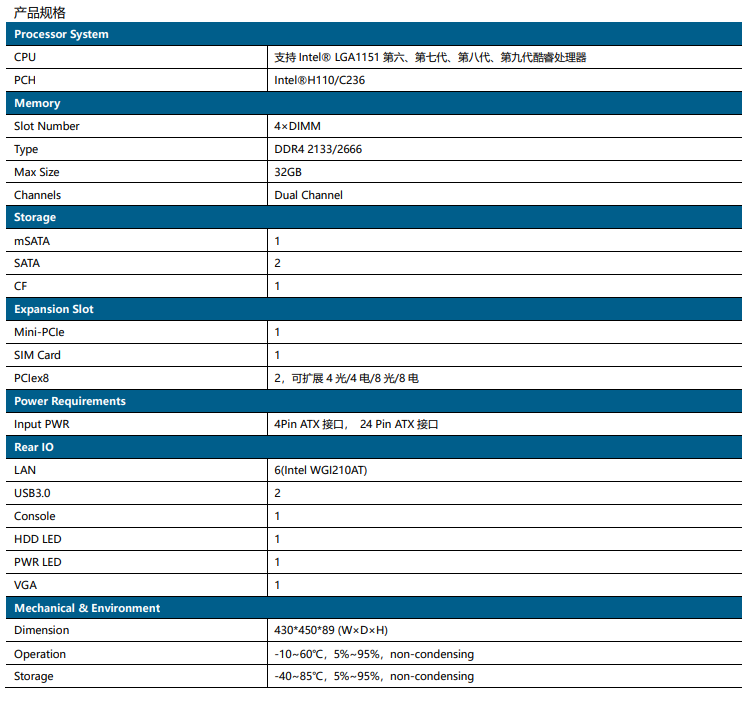 ◆1×mSATA,2×SATA,1×CF,1×Mini-Pcie,2×PCIex8,1×SIM